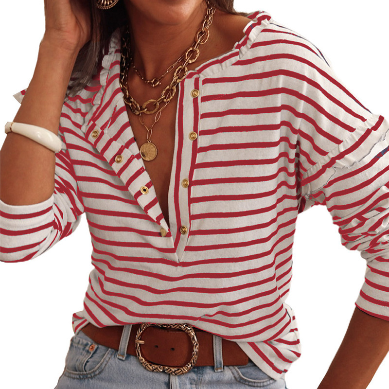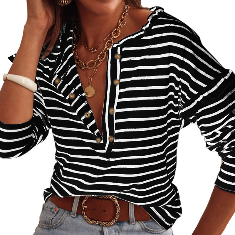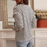 This women’s striped long-sleeve button-down top is a timeless addition to any wardrobe. Featuring a classic striped pattern and button-down design, it combines casual elegance with comfort. Perfect for pairing with jeans, skirts, or layering over a tank, this top offers versatility for both work and play. Ideal for cooler weather or casual office settings, it’s a must-have for effortless style.